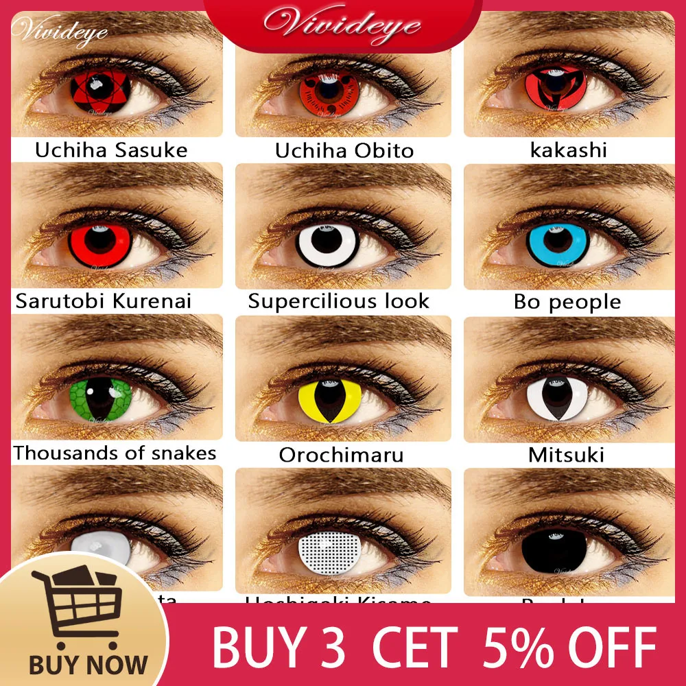 Name: Halloween maquillaje Cosplay Anime de lentes de contacto de Color para ojos Sasuke rojo blanco negro gris marrón multicolor lente 2 unids/par